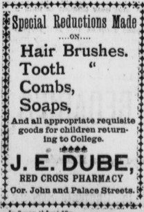J.E. Dubé fut aussi président de la Compagnie Pharmaceutique de la Croix Rouge, qui fabriquait des remèdes brevetés.