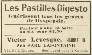 Historiques et publicités Victor Lévesque Liste des bouteilles BOUTEILLES DE PHARMACIE ↳ Lévesque, Victor Publicités Source : La Maison Moderne, Montréal, 23 septembre 1905.